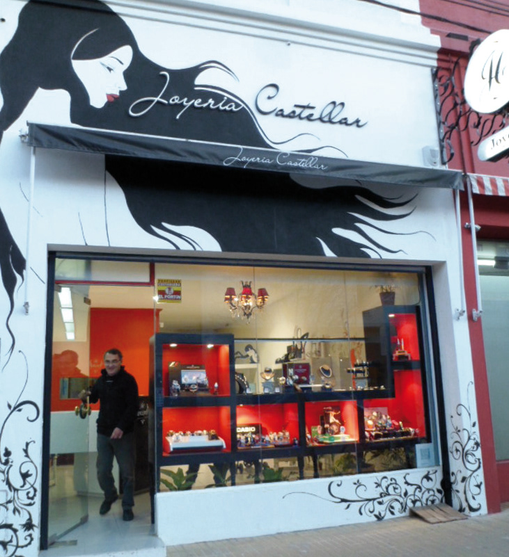 (escritorio mostrador, estanterías, exhibidores, etc.)