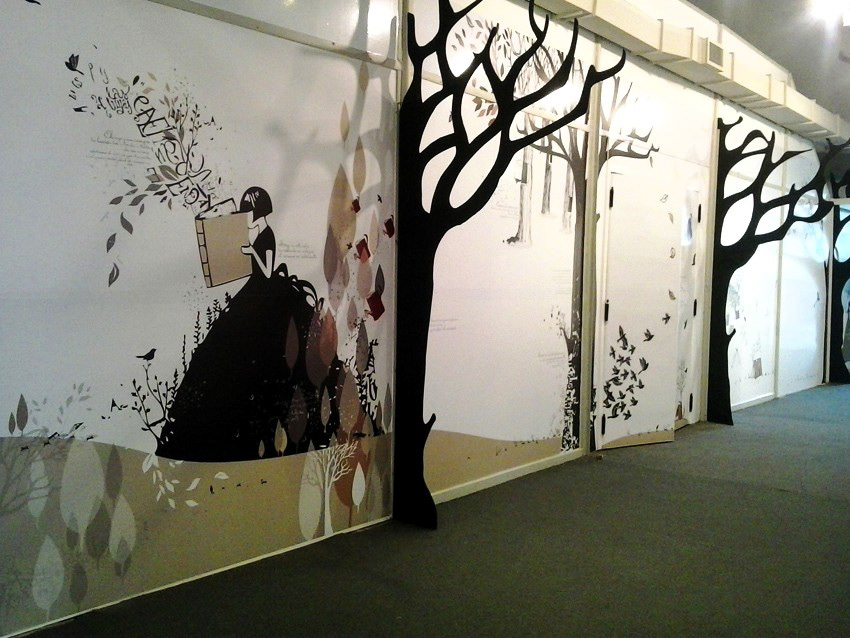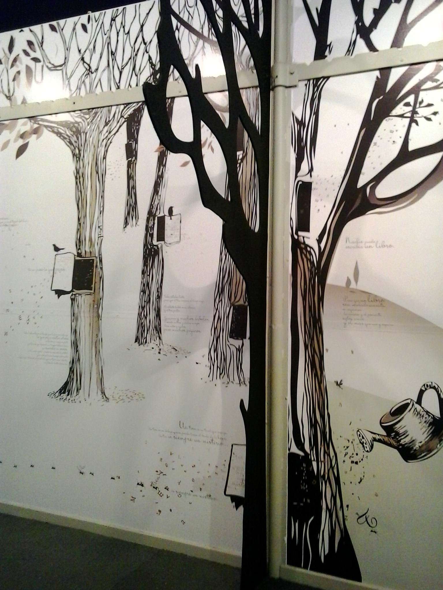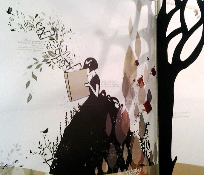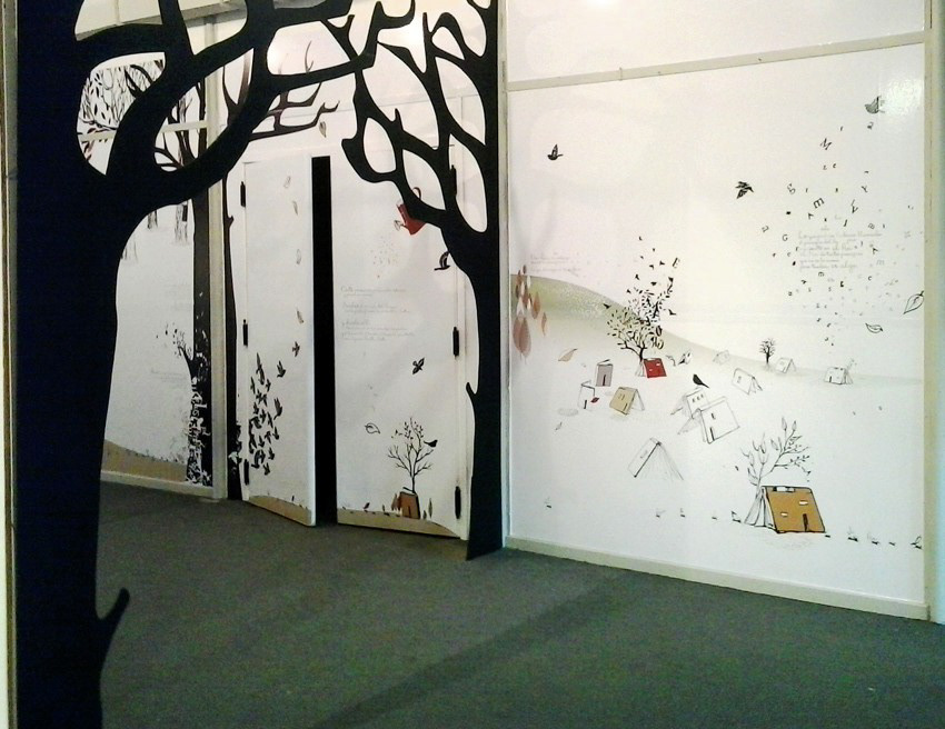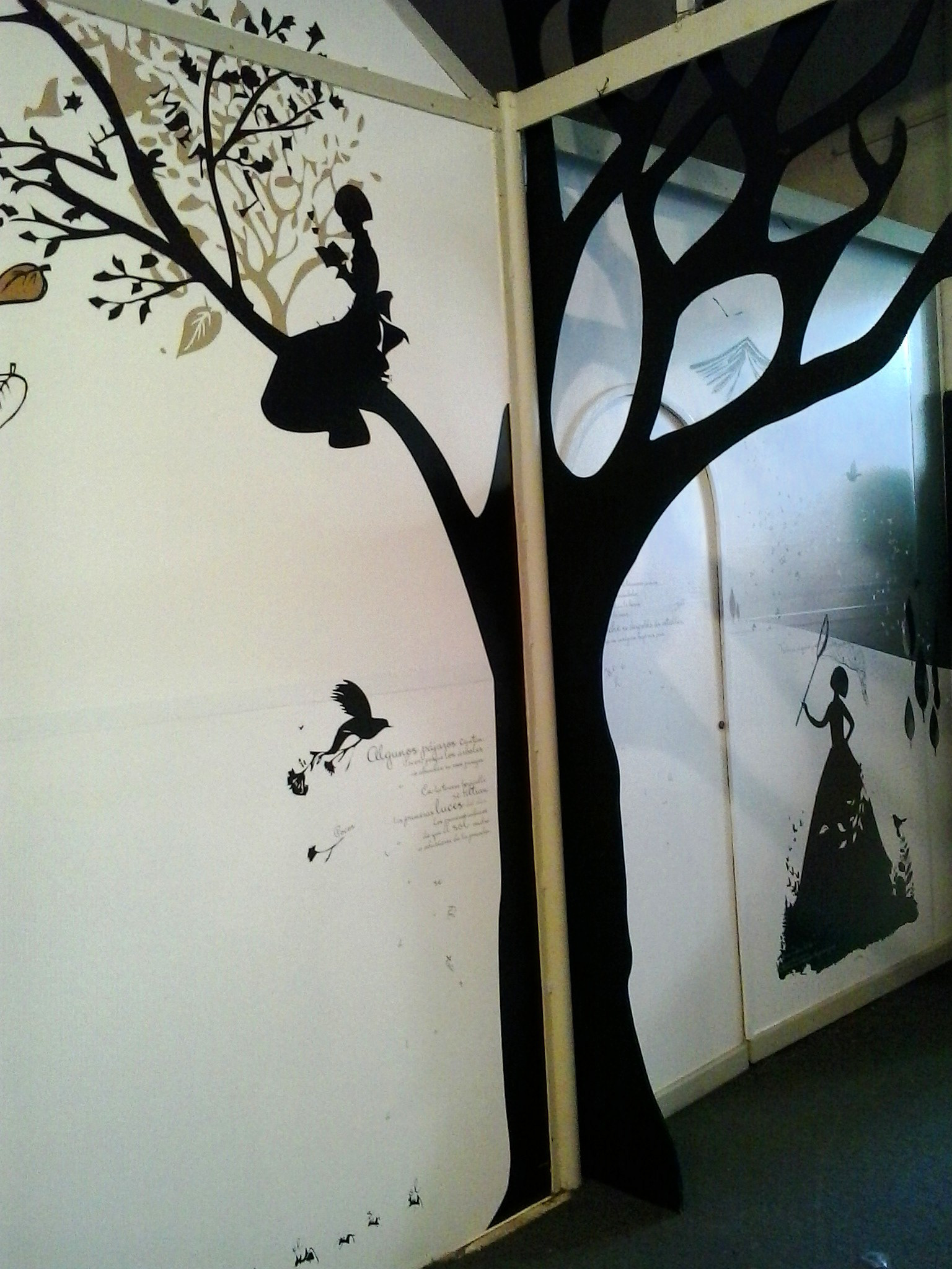 INSTALACIÓN INTERIOR: gráficas aplicadas en vinilo y árboles en 3d en pasillos.