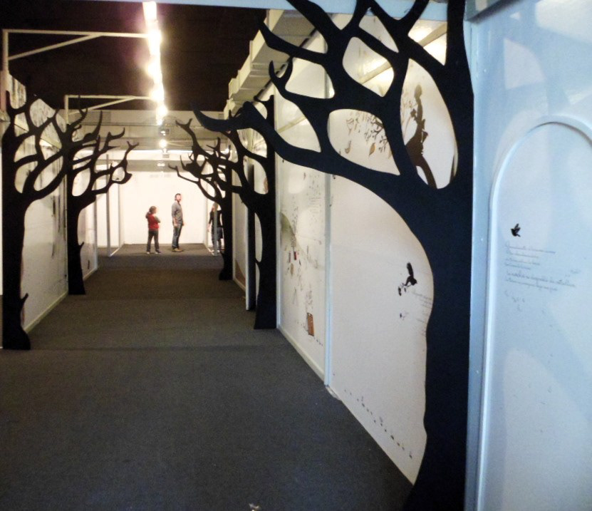 Piezas 3D: diseño de árboles y marca para aplicar en las 2 entradas del MUMA. /// INSTALACIÓN INTERIOR: Ilustraciones, diseño de gráficas aplicadas en vinilo al espacio con animaciones proyectadas y árboles piezas en 3d en paneles interiores.