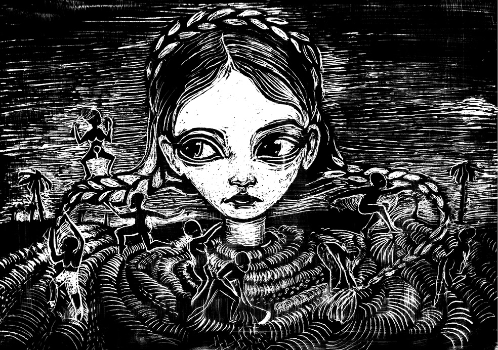 ¡Las 87 obras de la Muestra de Ilustración BLANCA BONITA, se inspiran en Qué blanca más bonita soy! del gran escritor Dolf Verroen multipremiada novela – infantil /juvenil/adulta- de 2006 que transcurre en el siglo XIX, en una plantación de té, propiedad de una familia holandesa con una inmensa población esclava, en la entonces Guyana Holandesa, hoy Suriname.