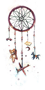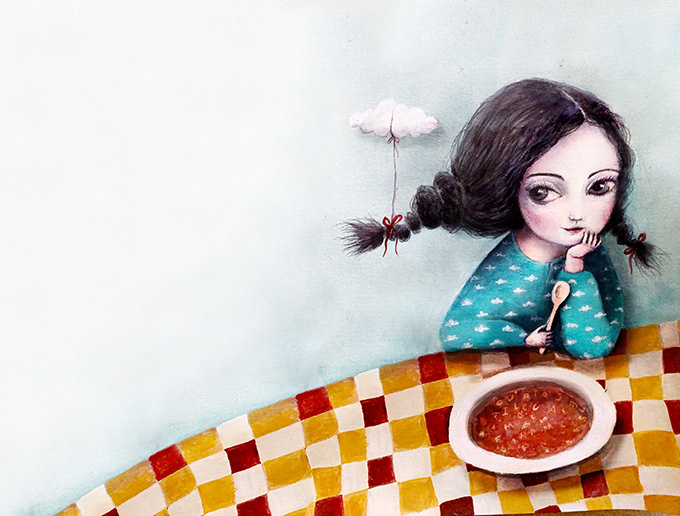 Ilustraciones: tapa, contratapa y solapas, viñetas y páginas. Tecnica: acrílico y lápiz